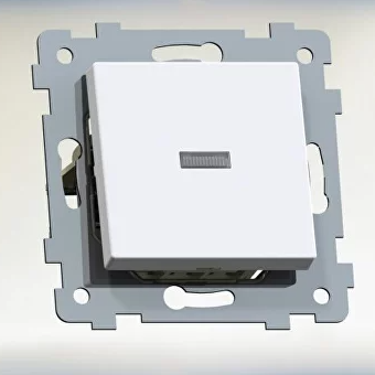 Механизм выключателя одноклавишный со светоиндексацией Номинальный ток — 10 А размер 70,6х70,6х45мм