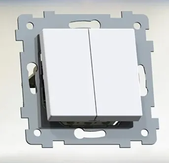 Механизм выключателя двухклавишный Номинальный ток — 10 А размер 70,6х70,6х45мм