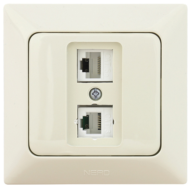 Розетка 1 СП комп. RJ45 кат.5e + телеф.RJ11 Ne-ad Aras крем