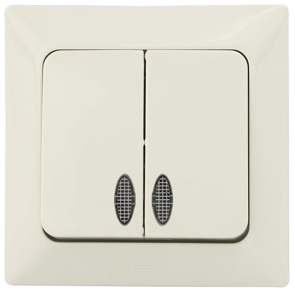 Выключатель 2 СП 10А с подсв. Ne-ad Aras крем