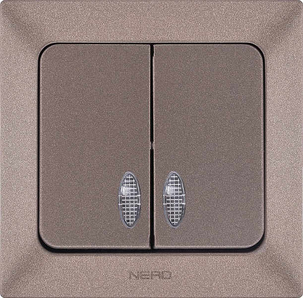 Выключатель 2 СП 10А с подсв. Ne-ad Aras мокко