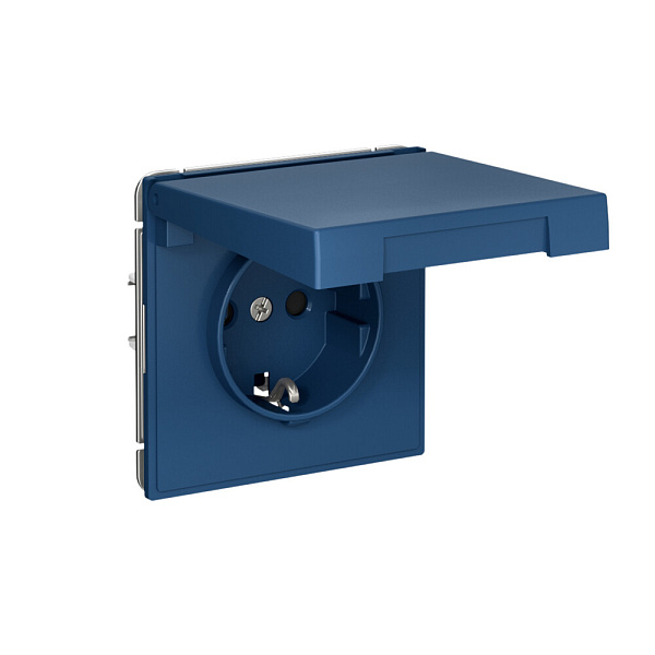 Механизм с быстрозажимными клеммами Systeme Electric серии ArtGallery в цвете аквамарин розетки одинарной с заземлением, шторками и крышкой подходит для сетей 250 В, на ток 16 А.