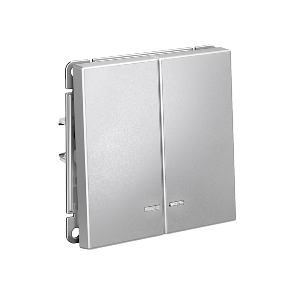 Механизм Systeme Electric серии ArtGallery в цвете алюминий выключателя 2-клавишного c подсветкой подходит для сетей 250 В, на ток 10 А.