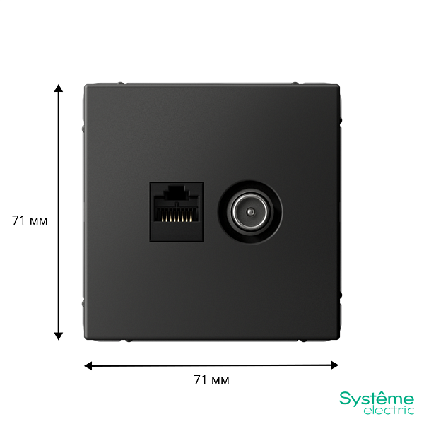 Механизм Systeme Electric серии ArtGallery в цвете базальт двойной розетки разъёмами RJ45 категория 5е и TV предназначен для удобного и быстрого подключения вашего компьютера и телевизора к соответствующим сетям.