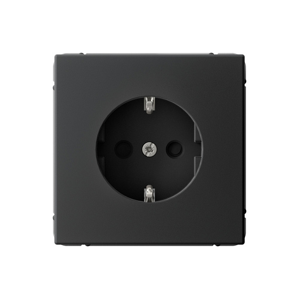 Механизм с быстрозажимными клеммами Systeme Electric серии ArtGallery в цвете карбон розетки одинарной с заземлением и шторками подходит для сетей 250 В, на ток 16 А.