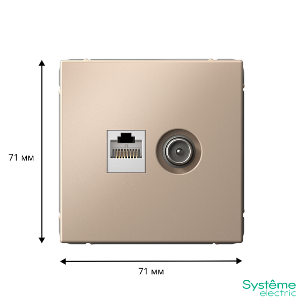 Механизм Systeme Electric серии ArtGallery в цвете песочный двойной розетки разъёмами RJ45 категория 5е и TV предназначен для удобного и быстрого подключения вашего компьютера и телевизора к соответствующим сетям.