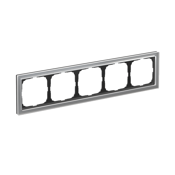Рамка Systeme Electric серии ArtGallery Pure из органического стекла в цвете алюминий, в 5-и постовом исполнении.