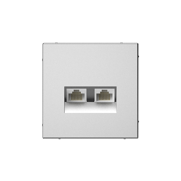 Механизм Systeme Electric серии ArtGallery в цвете сталь двойной компьютерной розетки с разъёмом RJ45+RJ45 кат.
