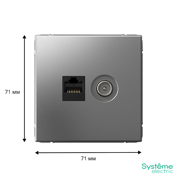 Механизм Systeme Electric серии ArtGallery в цвете сталь двойной розетки разъёмами RJ45 категория 5е и TV предназначен для удобного и быстрого подключения вашего компьютера и телевизора к соответствующим сетям.