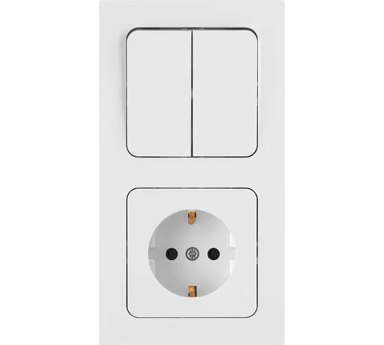 2В-РЦ-7522 Блок Выключатель двухклавишный + розетка с заземляющим контактом скрытой установки