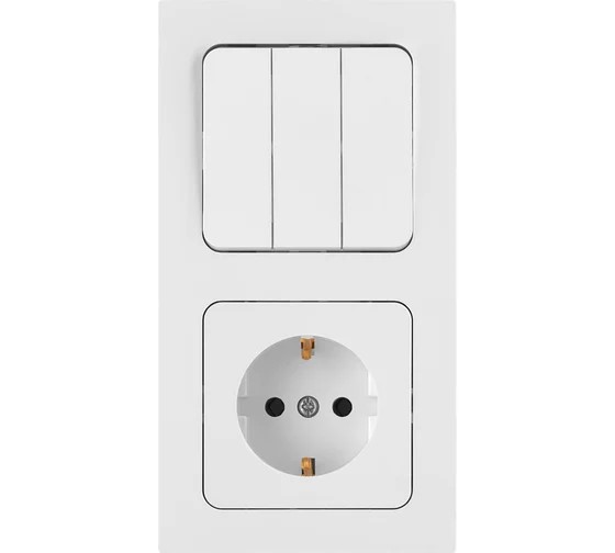Блок 3В-РЦ-7532 Выключатель трехклавишный + розетка с заземляющим контактом скрытой установки