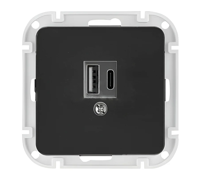 Розетка 1 СП USB A+тип-С 3А механизм Bylectrica Astrum карбон