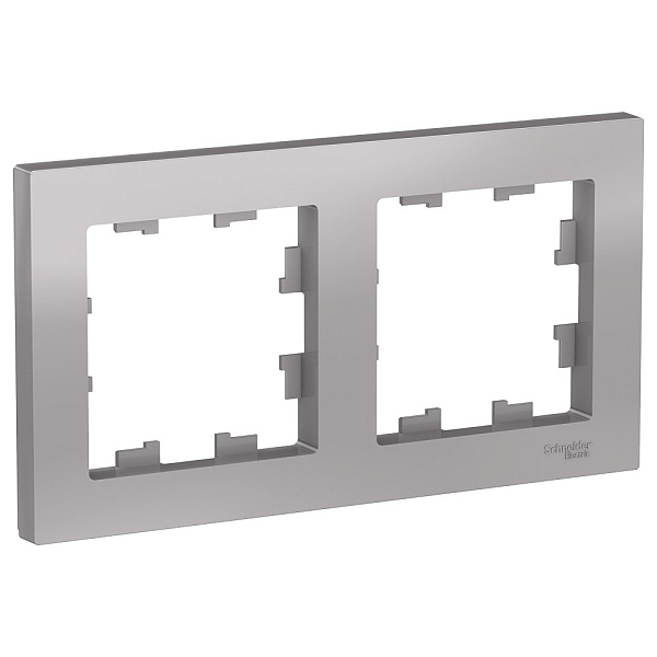 Рамка Systeme Electric (ранее Schneider Electric) серии AtlasDesign в цвете алюминий двухместная.