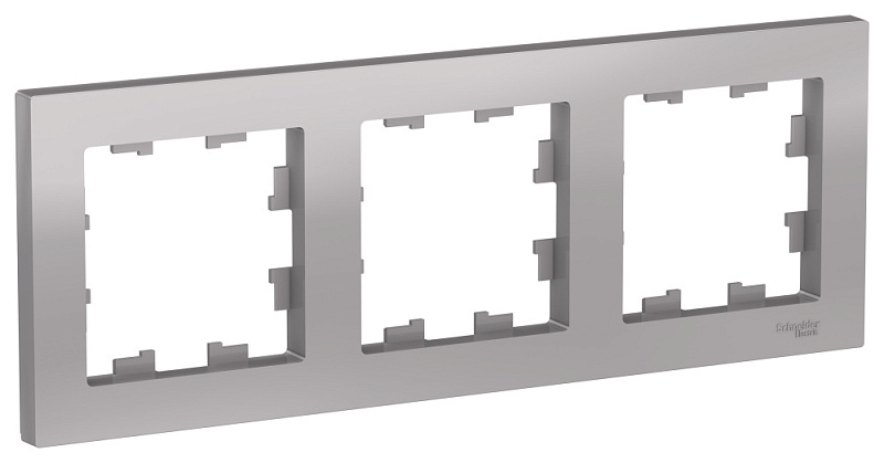 Рамка Systeme Electric (ранее Schneider Electric) серии AtlasDesign в цвете алюминий трёхместная.