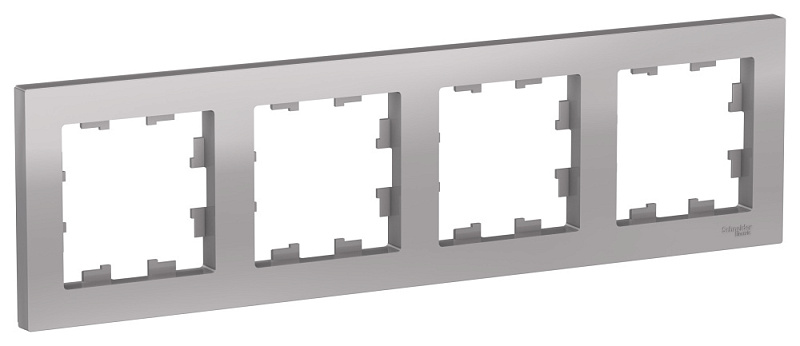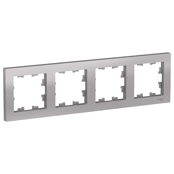 Рамка Systeme Electric (ранее Schneider Electric) серии AtlasDesign в цвете алюминий четырёхместная.