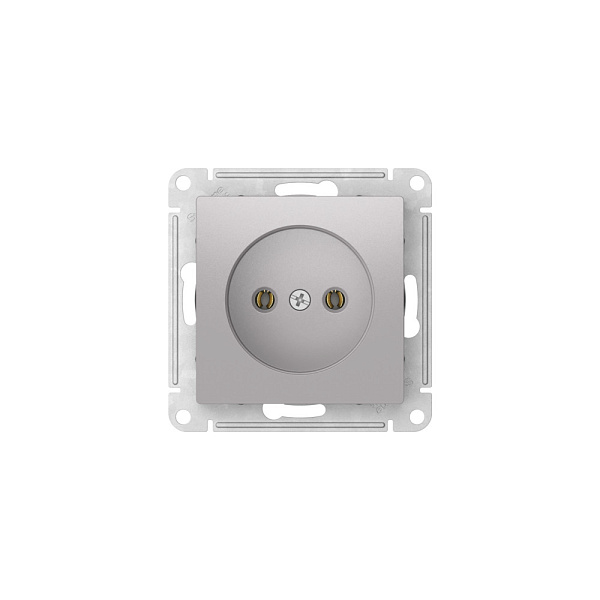 Механизм с быстрозажимными клеммами Systeme Electric (ранее Schneider Electric) серии AtlasDesign в цвете алюминий розетки одинарной без заземления и без шторок подходит для сетей 250 В, на ток 16 А.