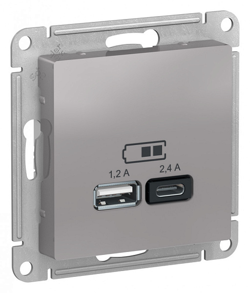 ATN000339 Розетка 1 СП USB А+С 2,4А (2х1,2А) 5В механизм SE AtlasDesign алюминий