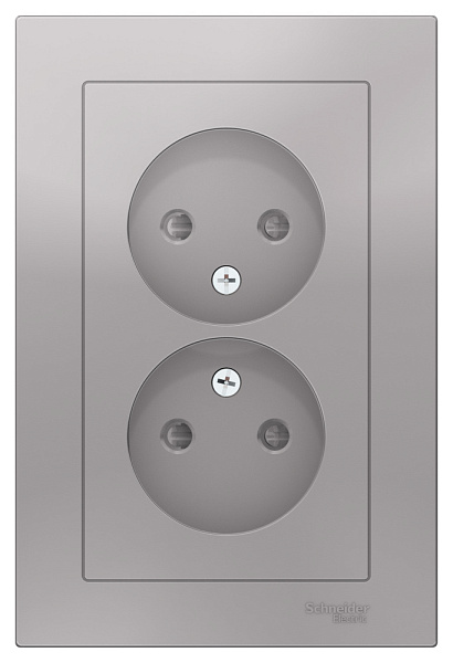 Розетка 2 СП без заземления, со шторками, 16А, в сборе, ATLASDESIGN алюминий ATN000322 Schneider Electric