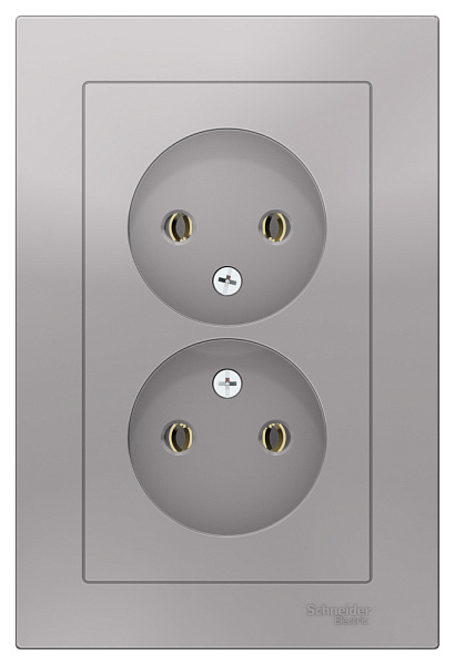 Розетка 2 СП без заземления, 16А, в сборе, ATLASDESIGN алюминий ATN000320 Schneider Electric