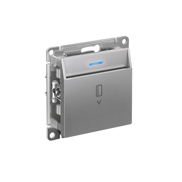 Механизм выключателя карточного с подсветкой Systeme Electric (ранее Schneider Electric) серии AtlasDesign в цвете алюминий подходит для сетей 250 В, на ток 10 А.