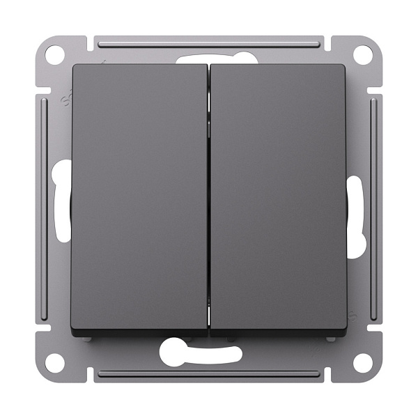 Механизм Systeme Electric (ранее Schneider Electric) серии AtlasDesign в цвете базальт переключателя 2-клавишного перекрёстного подходит для сетей 250 В, на ток 10 А.