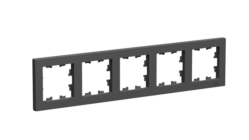 Рамка Systeme Electric (ранее Schneider Electric) серии AtlasDesign в цвете БАЗАЛЬТ пятиместная.