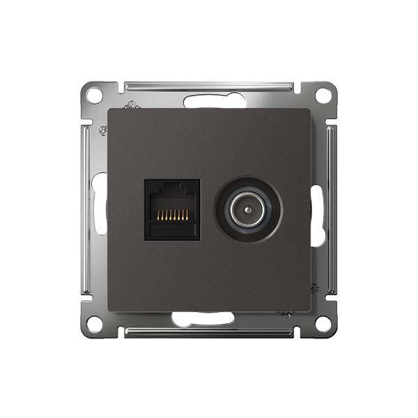 Механизм Systeme Electric (ранее Schneider Electric) серии AtlasDesign в цвете базальт двойной розетки с разъёмами RJ45 категория 5е и TV предназначен для удобного и быстрого подключения вашего компьютера и телевизора к соответствующим сетям.