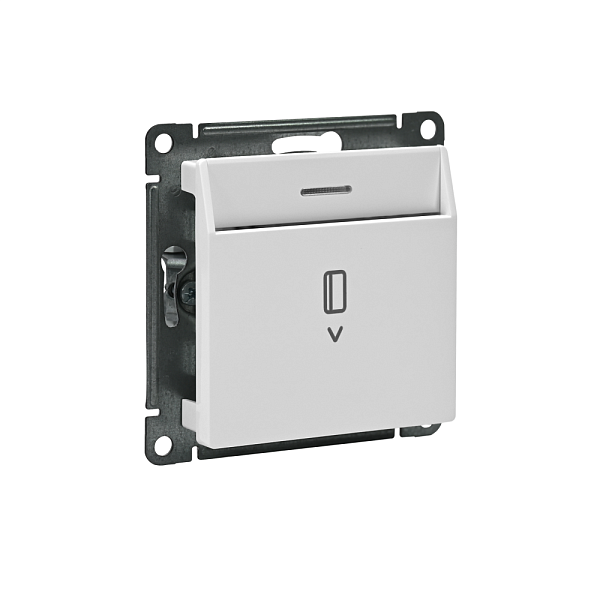 Механизм выключателя карточного с подсветкой Systeme Electric (ранее Schneider Electric) серии AtlasDesign в цвете белый подходит для сетей 250 В, на ток 10 А.