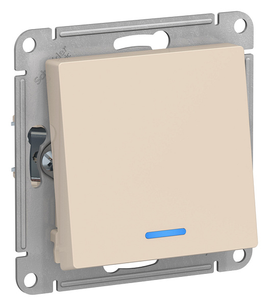 Механизм переключателя 1-клавишного с подсветкой Systeme Electric (ранее Schneider Electric) серии AtlasDesign в бежевом цвете подходит для сетей 250 В, на ток 10 А.