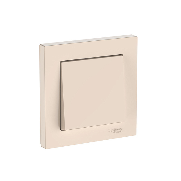 Механизм с быстрозажимными клеммами 1-клавишного выключателя в сборе Systeme Electric (ранее Schneider Electric) серии AtlasDesign в бежевом цвете подходит для сетей 250 В, на ток 10 А.