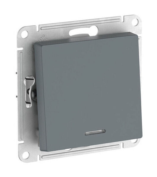 Механизм с быстрозажимными клеммами Systeme Electric (ранее Schneider Electric) серии AtlasDesign в цвете грифель 1-клавишного переключателя с подсветкой подходит для сетей 250 В, на ток 10 А.