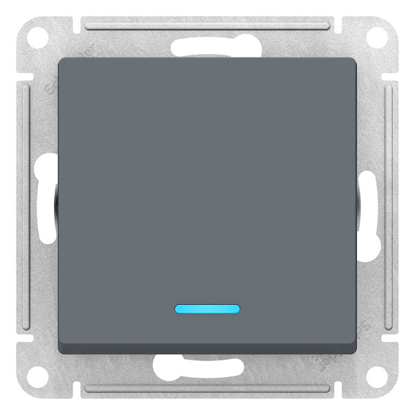 Механизм переключателя 1-клавишного с подсветкой Systeme Electric (ранее Schneider Electric) серии AtlasDesign в цвете грифель подходит для сетей 250 В, на ток 10 А.