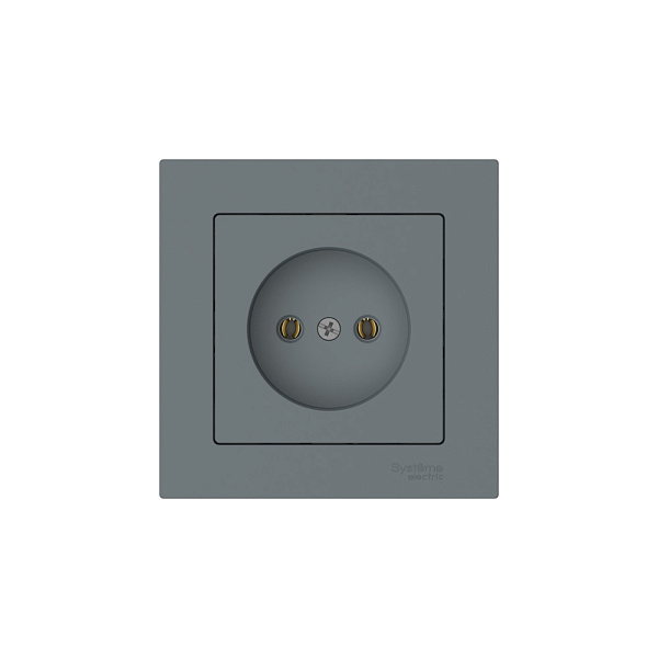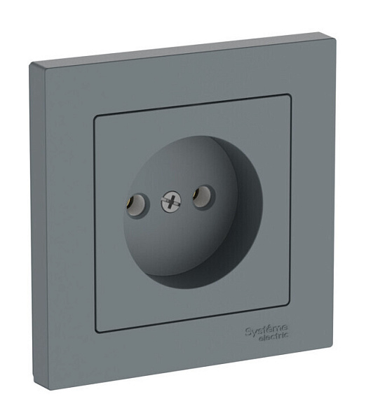 Механизм с быстрозажимными клеммами розетки без заземления в сборе Systeme Electric (ранее Schneider Electric) серии AtlasDesign в цвете грифель подходит для сетей 250 В, на ток 16 А.