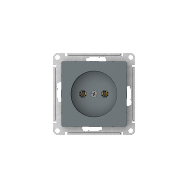 Механизм с быстрозажимными клеммами Systeme Electric (ранее Schneider Electric) серии AtlasDesign в цвете грифель розетки одинарной без заземления и без шторок подходит для сетей 250 В, на ток 16 А.