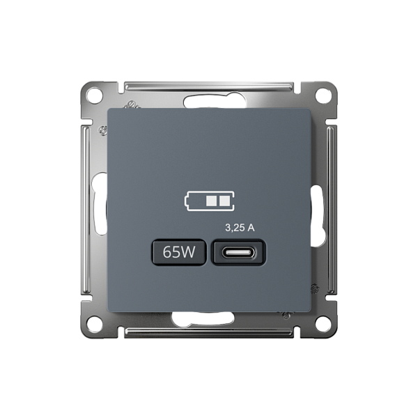 Розетка Systeme Electric (ранее Schneider Electric) серии AtlasDesign в цвете грифель USB с разъемом типа C высокоскоростная.