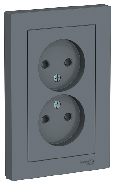 Розетка 2 СП без заземления, со шторками, 16А, в сборе, ATLASDESIGN грифель ATN000722 Schneider Electric