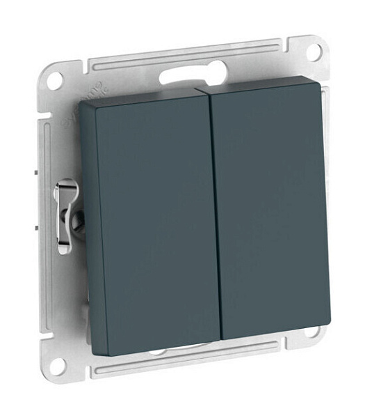 Механизм с быстрозажимными клеммами Systeme Electric (ранее Schneider Electric) серии AtlasDesign в цвете изумруд 2-клавишного переключателя подходит для сетей 250 В, на ток 10 А.