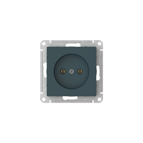 Механизм с быстрозажимными клеммами Systeme Electric (ранее Schneider Electric) серии AtlasDesign в цвете изумруд розетки одинарной без заземления и без шторок подходит для сетей 250 В, на ток 16 А.