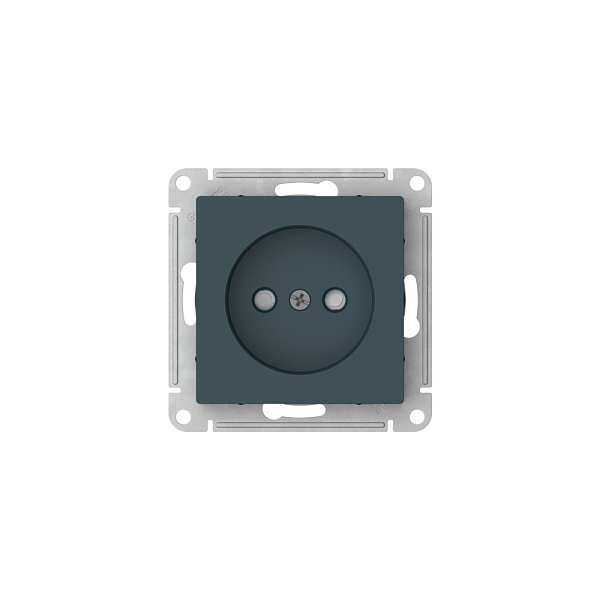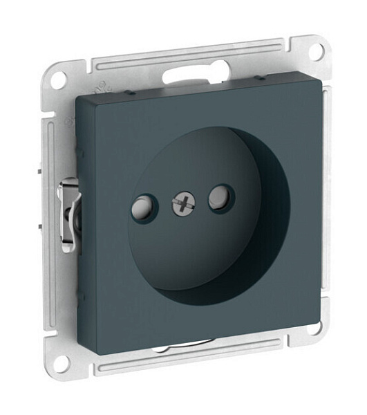 Механизм с быстрозажимными клеммами Systeme Electric (ранее Schneider Electric) серии AtlasDesign в цвете изумруд розетки одинарной без заземления со штороками подходит для сетей 250 В, на ток 16 А.