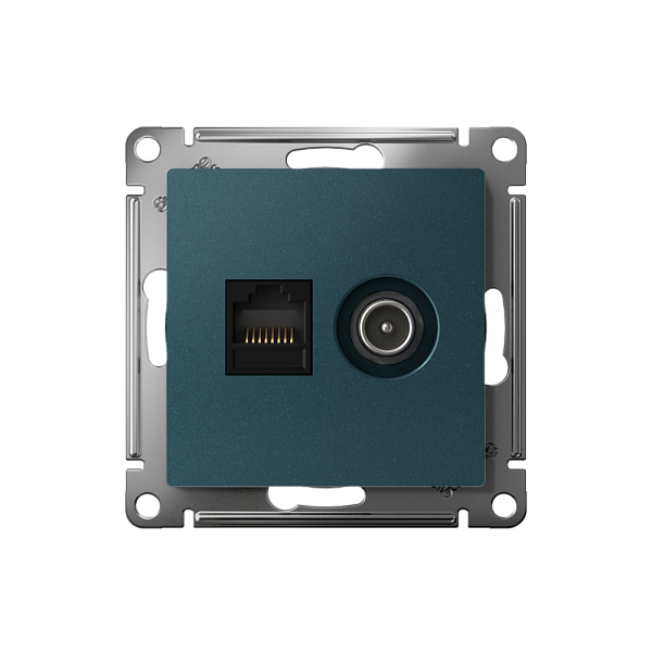 Механизм Systeme Electric (ранее Schneider Electric) серии AtlasDesign в цвете изумруд двойной розетки разъёмами RJ45 категории 5е и TV предназначен для удобного и быстрого подключения вашего компьютера и телевизора к соответствующим сетям.