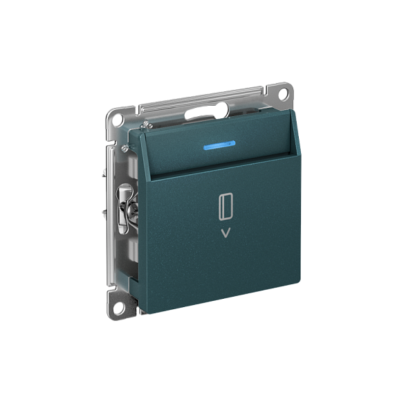 Механизм выключателя карточного с подсветкой Systeme Electric (ранее Schneider Electric) серии AtlasDesign в цвете изумруд подходит для сетей 250 В, на ток 10 А.