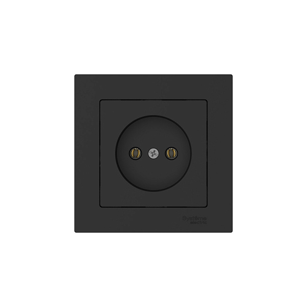 Механизм с быстрозажимными клеммами розетки без заземления в сборе Systeme Electric (ранее Schneider Electric) серии AtlasDesign в цвете карбон подходит для сетей 250 В, на ток 16 А.