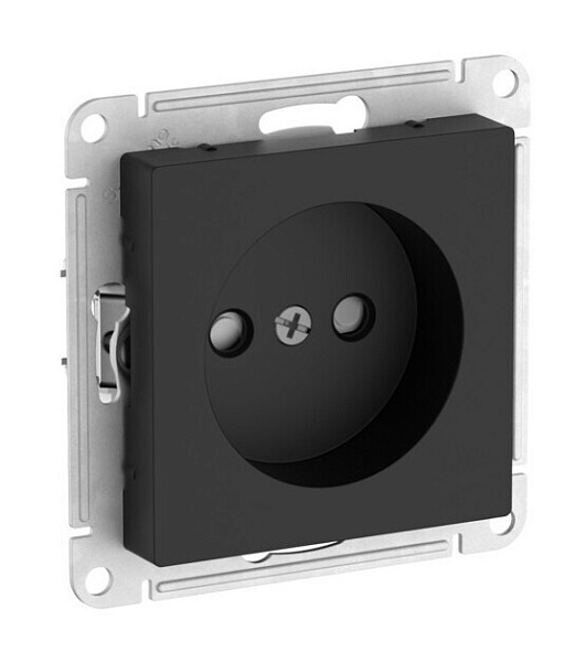 Механизм с быстрозажимными клеммами Systeme Electric (ранее Schneider Electric) серии AtlasDesign в цвете карбон розетки одинарной без заземления со штороками подходит для сетей 250 В, на ток 16 А.