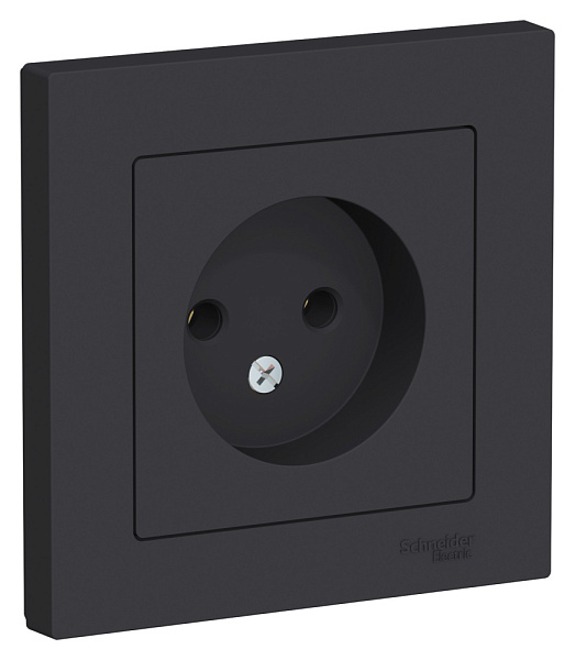Розетка в сборе Systeme Electric (ранее Schneider Electric) серии AtlasDesign в цвете карбон одинарная без заземления и без шторок подходит для сетей 250 В, на ток 16 А.