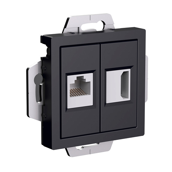 Механизм Systeme Electric (ранее Schneider Electric) серии AtlasDesign в цвете карбон двойной розетки разъёмами RJ45 категория 5е и HDMI предназначен для удобного и быстрого подключения вашего компьютера и телевизора к соответствующим сетям.