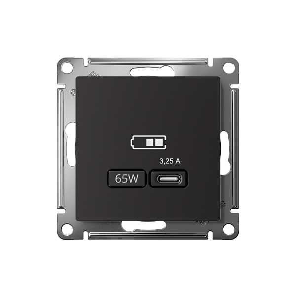 Розетка Systeme Electric (ранее Schneider Electric) серии AtlasDesign в цвете карбон USB с разъемом типа C высокоскоростная.