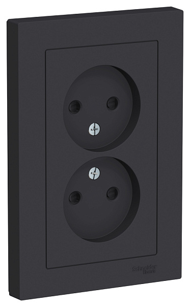 Розетка 2 СП без заземления, со шторками, 16А, в сборе, ATLASDESIGN карбон ATN001022 Schneider Electric