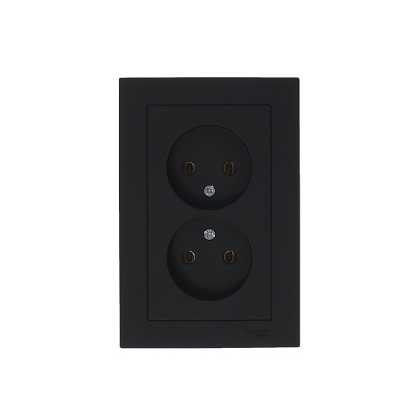 Розетка двойная в сборе Systeme Electric (ранее Schneider Electric) серии AtlasDesign в цвете карбон без заземления и без шторок подходит для сетей 250 В, на ток 16 А.