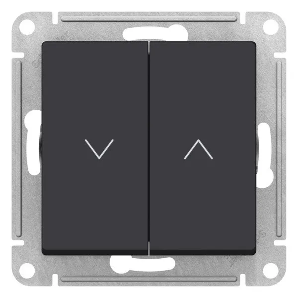 Механизм выключателя жалюзи 2-клавишного Systeme Electric (ранее Schneider Electric) серии AtlasDesign в цвете карбон подходит для сетей 250 В, на ток 10 А.