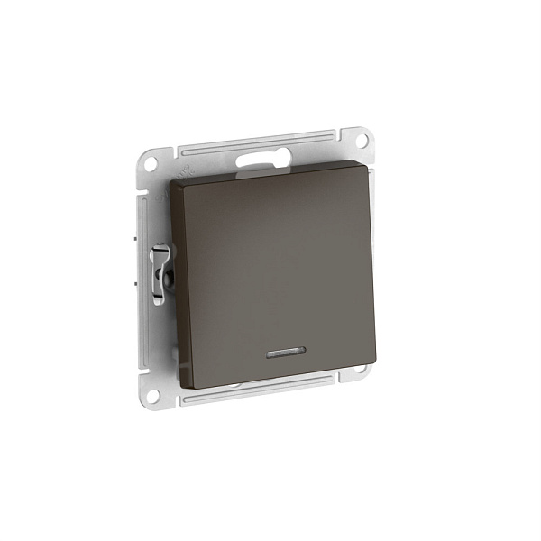 Механизм с быстрозажимными клеммами 1-клавишного выключателя с подсветкой Systeme Electric (ранее Schneider Electric) серии AtlasDesign в цвете мокко подходит для сетей 250 В, на ток 10 А.